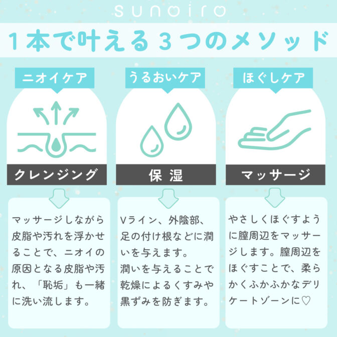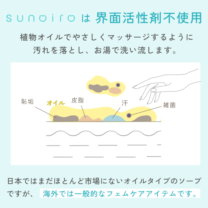 sunoiroヴィーガンフェミニンオイル<リフレッシュ> 特別価格 1928 円 (税込) 2570 円 (税込) 購入はこちら ※商品価格以外に別途送料がかかります。 説明 これ1本でデリケートゾーンのクレンズ、保湿、マッサージができる100%植物由来成分でできた新しいデリケートゾーンオイルソープです。 新商品のリフレッシュは、ほんのり清涼感が感じられる特に夏におすすめのオイルです。 ムズムズやムレ、不快感が気になるときにひと塗りすれば、スーッと気持ちいい! コメントは受け付けていません。